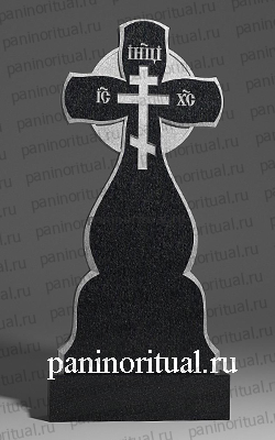 Памятник из гранита в виде фигурного креста уникальной формы имеющего изогнутые линии.