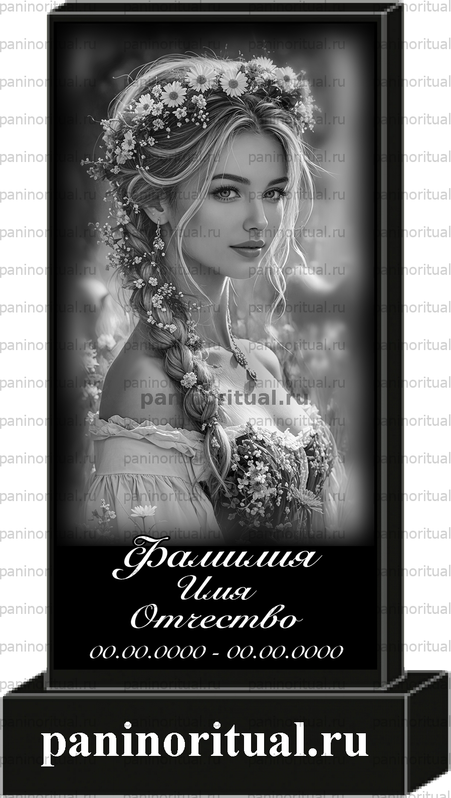 Прямоугольный памятник на могилу, оформление стандарт 003