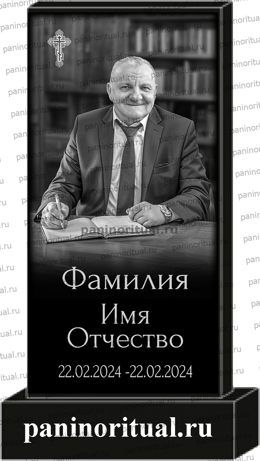 Прямоугольный памятник на могилу, оформление стандарт 020