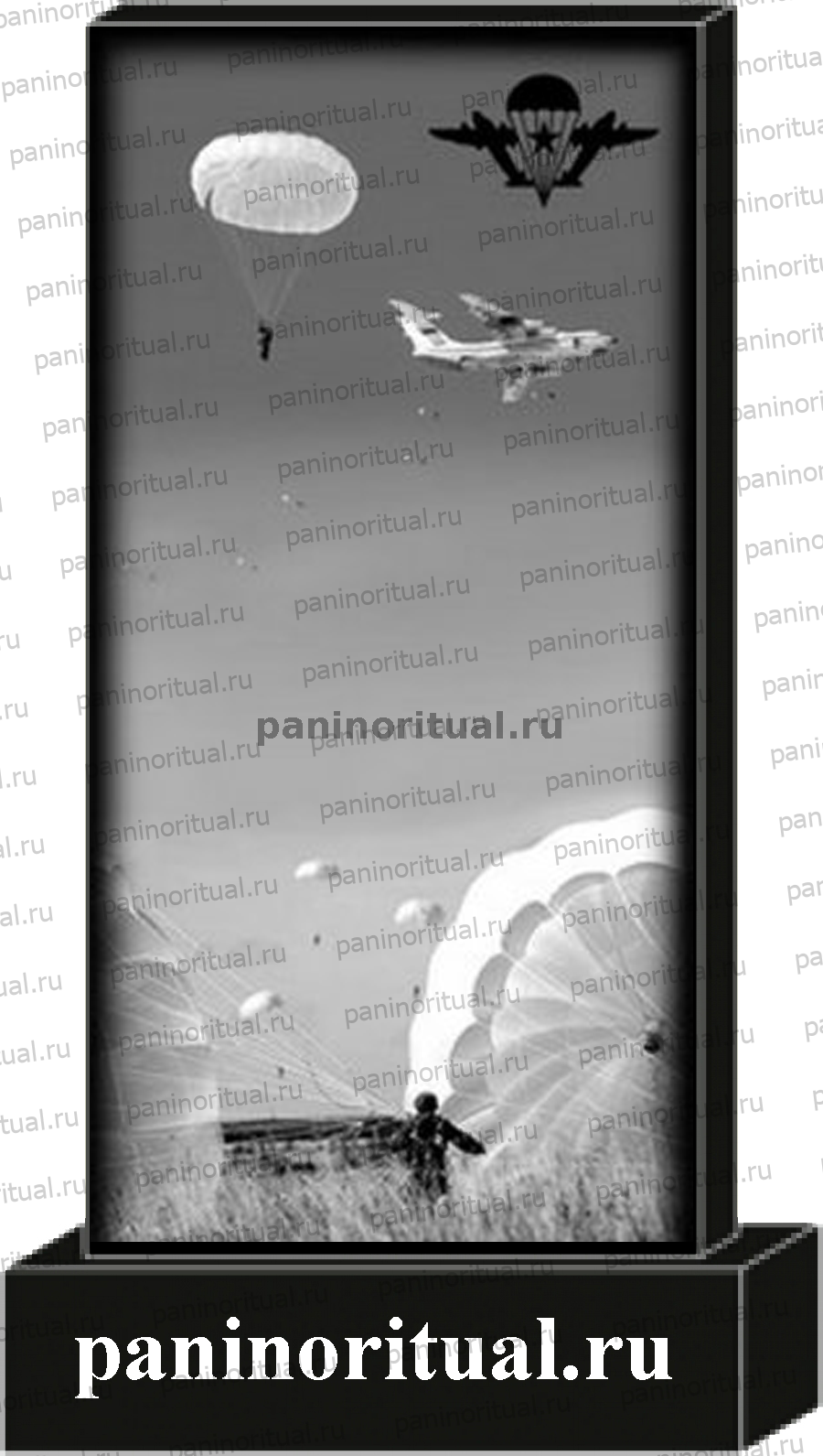 Классический гранитный прямоугольный памятник с художественным оформлением. Чтобы сохранить память о наших героях, чей подвиг будет жить в наших сердцах вечно - на надгробие нанесена гармоничная композиция с военной символикой, изображение, которое сочетает в себе достоинство, уважение и историческую ценность. Оформление подойдет на памятник военному ВДВ ветерану - это особый способ выразить уважение и благодарность человеку, отдавшему свою жизнь защите Отечества.