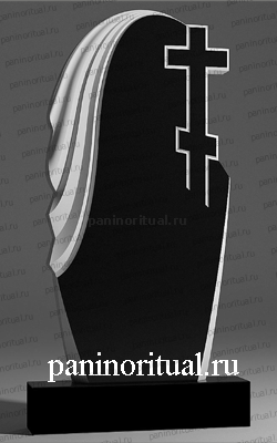 Фигурный памятник из гранита с шестиконечным крестом и накидкой.