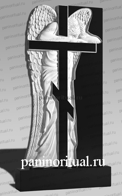 Вертикальный памятник из гранита с ангелом плачущим у креста.