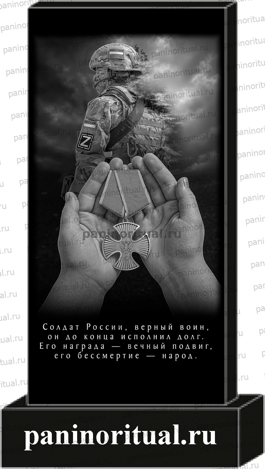 Купить мемориальный комплекс Гранитный по доступной цене вы можете в " Панино Ритуал". Мы поможем выбрать форму надгробия и его оформление для военнослужащих любой профессии, ветеранов, солдат. Вертикальный памятник из гранита - олицетворяет защиту, опору и отвагу. Он идеально подойдёт на одиночную могилу участника боевых действий или военнослужащего. Стела 120х60х8см Достоинства изделий из гранита: